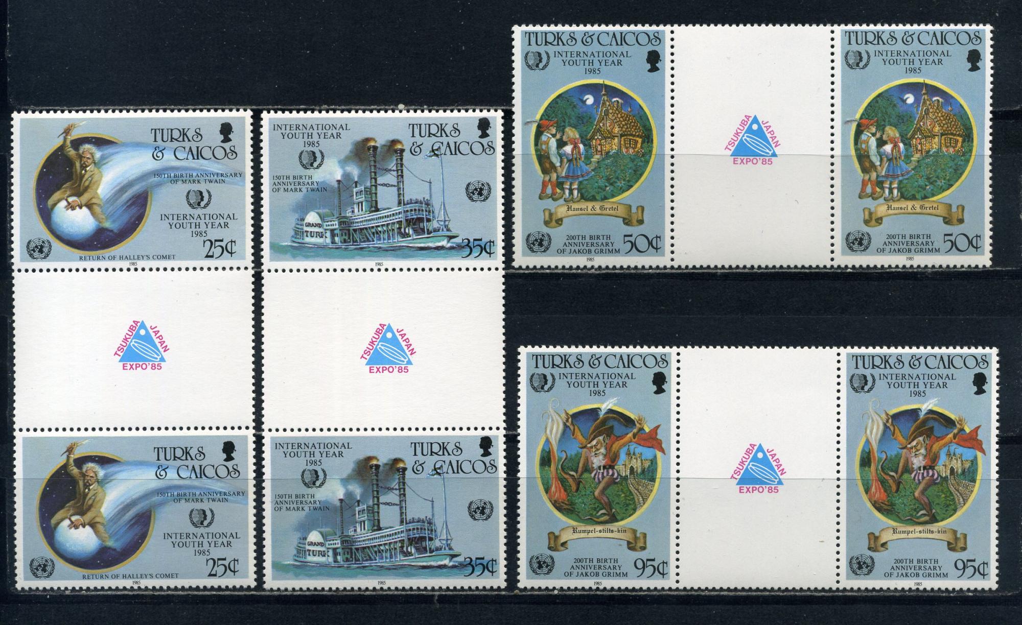 Почтовые марки. Тёркс и Кайкос. 1989г. Год молодёжи. Марк Твен. №738-741. Гаттер-пары.