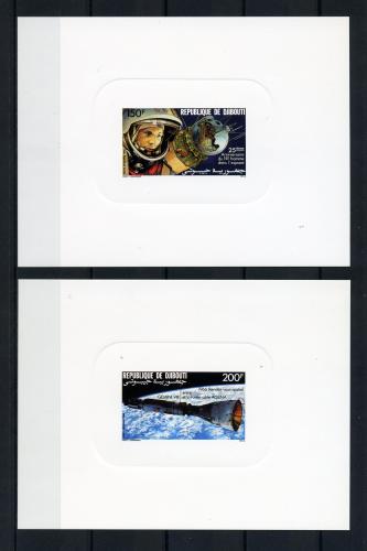 Почтовые марки. Джибути. 1986г. Космос. Гагарин. №480-481. Люкс-Блоки. Тиснение.