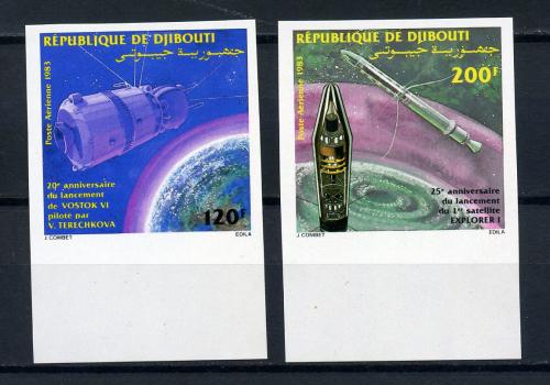 Почтовые марки. Джибути. 1983г. Космос. Терешкова. №378в-379в. Беззубц.