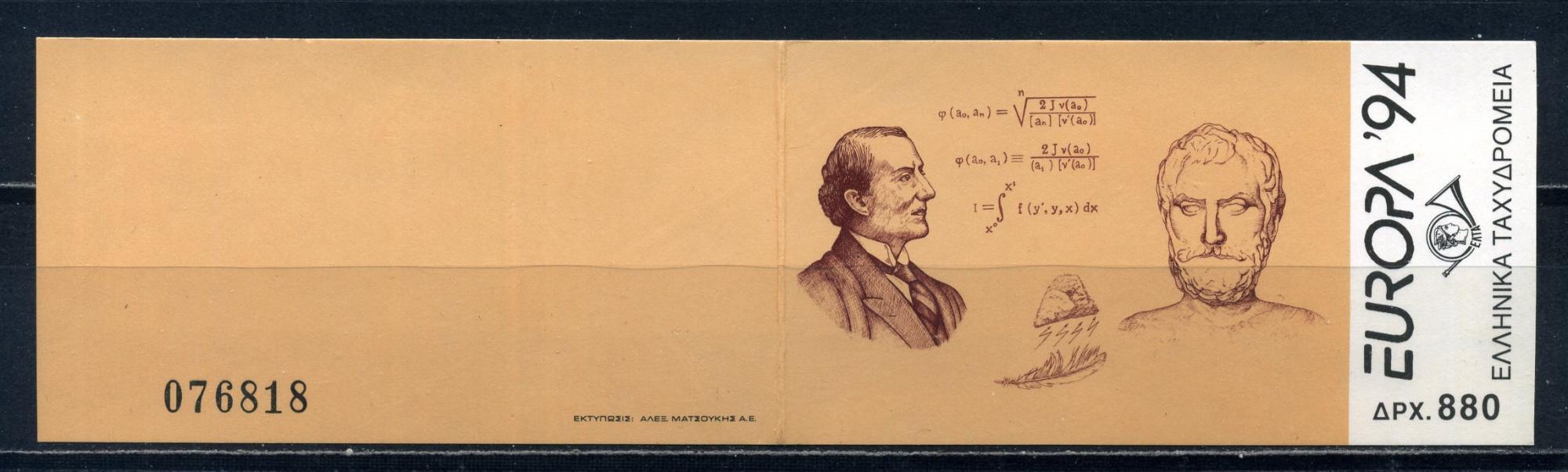 Почтовые марки. Буклет. Греция. 1994г. Европа. Изобретения. №1848С-1849С. Сцепка х 2 (Mi: 16.00 Евро).