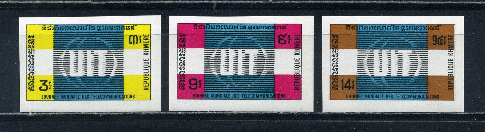 Почтовые марки. Камбоджа. 1972г. Телеком. №332-334В. Беззубц.