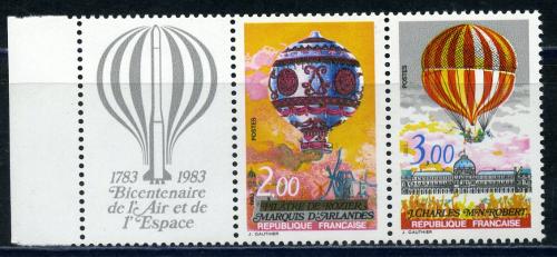 Почтовые марки. Франция. 1983г. 200-летие воздухоплавания. №2387-2388. С купоном.