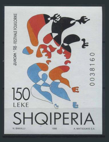 Почтовые марки. Албания. 1998 г. № Бл. 112. Европа. Фестиваль фольклора.