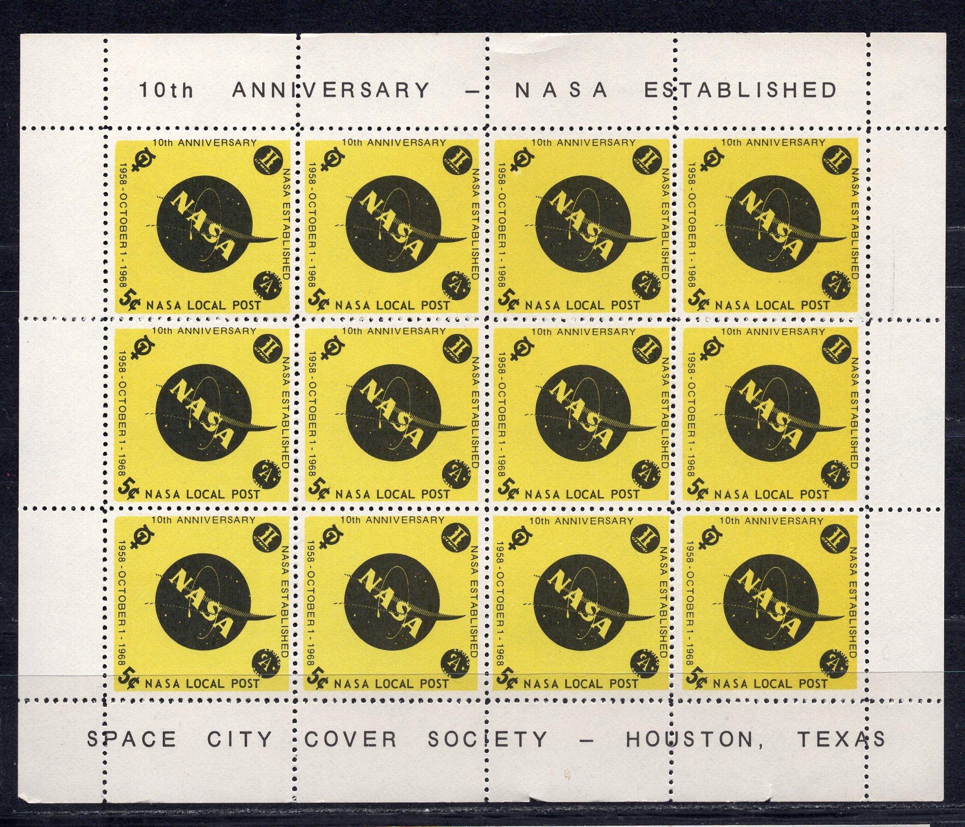 Почтовые марки. США. 1968гг. Космос. 10-ая годовщина НАСА. Лист.
