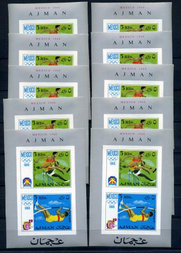 Почтовые марки. Аджман 1968 г. Летние Олимпийские игры 1968 г. Bl32B. 10 блоков.