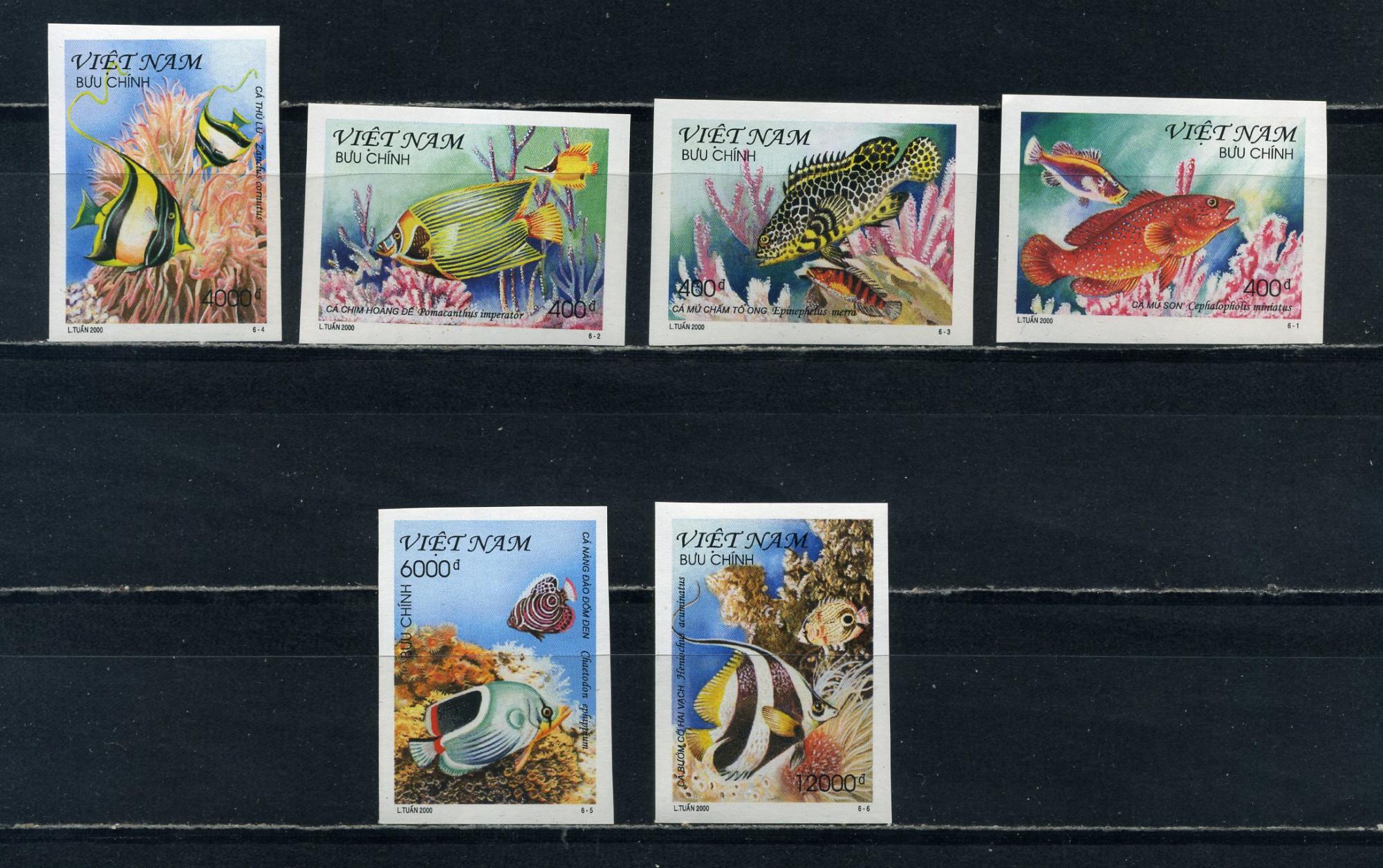 Почтовые марки. Вьетнам. 2000г. Рыбы и кораллы. №3076в-3081в. Беззубц.