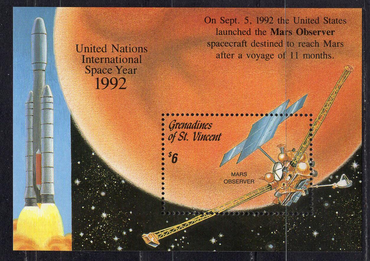 Почтовые марки. Гренадины. 1992г. Год Космоса. Блок №120.