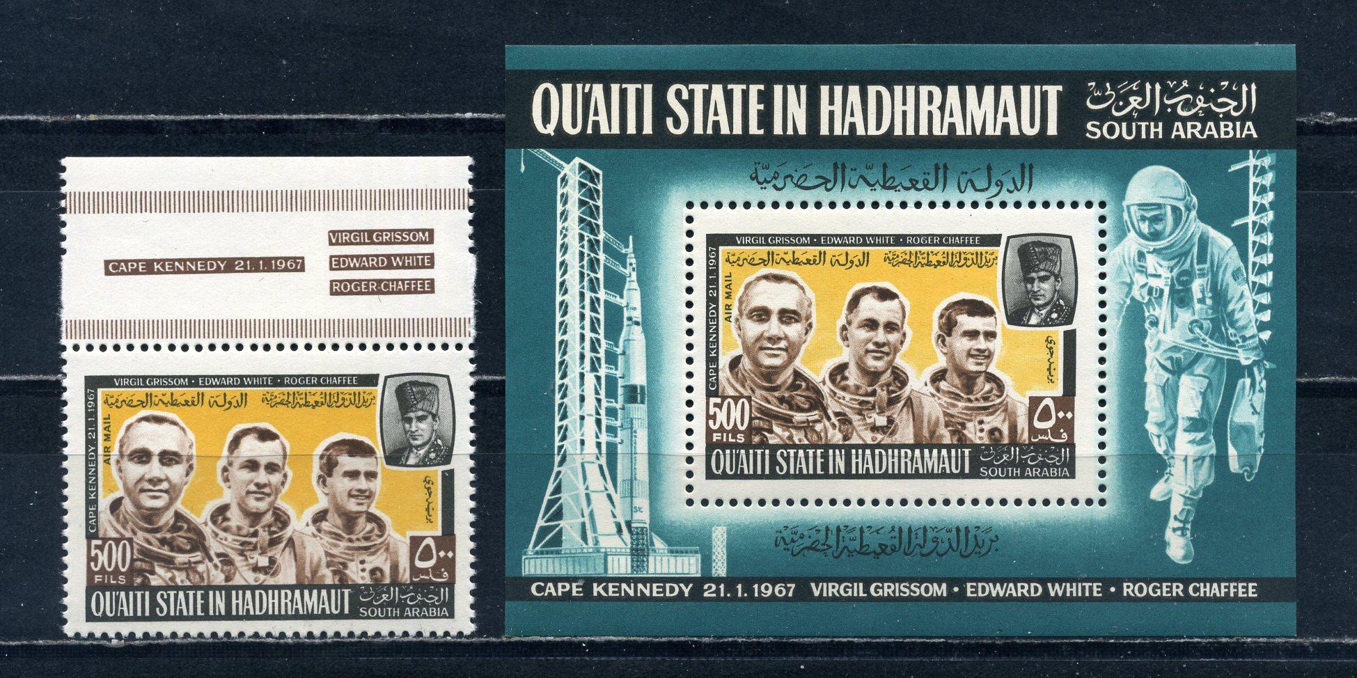Почтовые марки. Аден Qu'aiti St. 1967г. Космос. Астронавты США. №141. Блок №16. (Mi: 24.00 Евро).