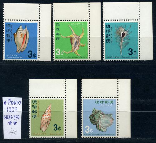Почтовые марки. О. РЮКЮ 1967 г. Ракушки. № 186-190