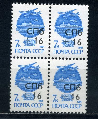 Почтовые марки. Россия. 1992г. Стандарт. Надпечатка СПб. Локальная почта. №L1. КБ.