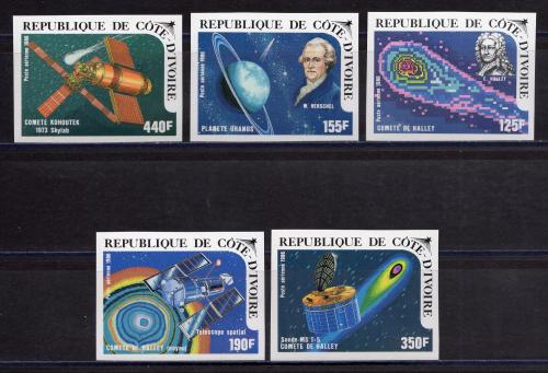 Почтовые марки. Кот д'Ивуар. 1986г. Космос. Комета. №888в-892в. Беззубц.
