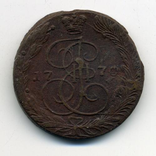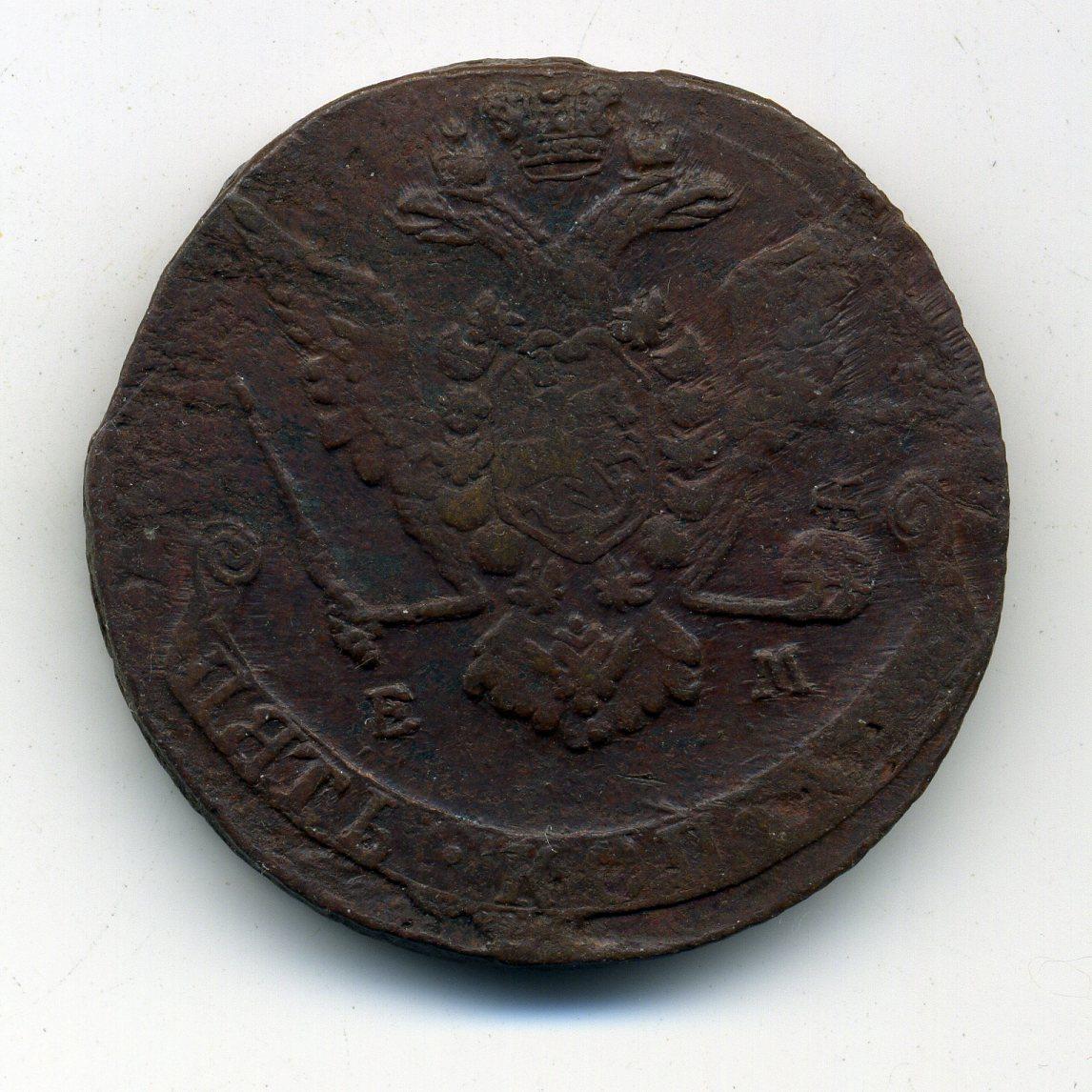 Монеты царской России. 5 копеек 1770 г. ЕМ