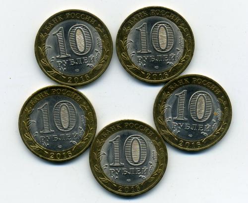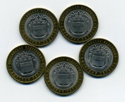 Монеты России. 10 рублей 2016 г. Амурская область. 5 шт.