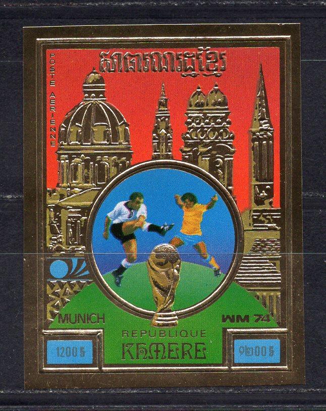 Почтовые марки. Камбоджа, 1975 г. Футбол. №431B. Безз. Фольга. Золото. (Mi 60,00 €)