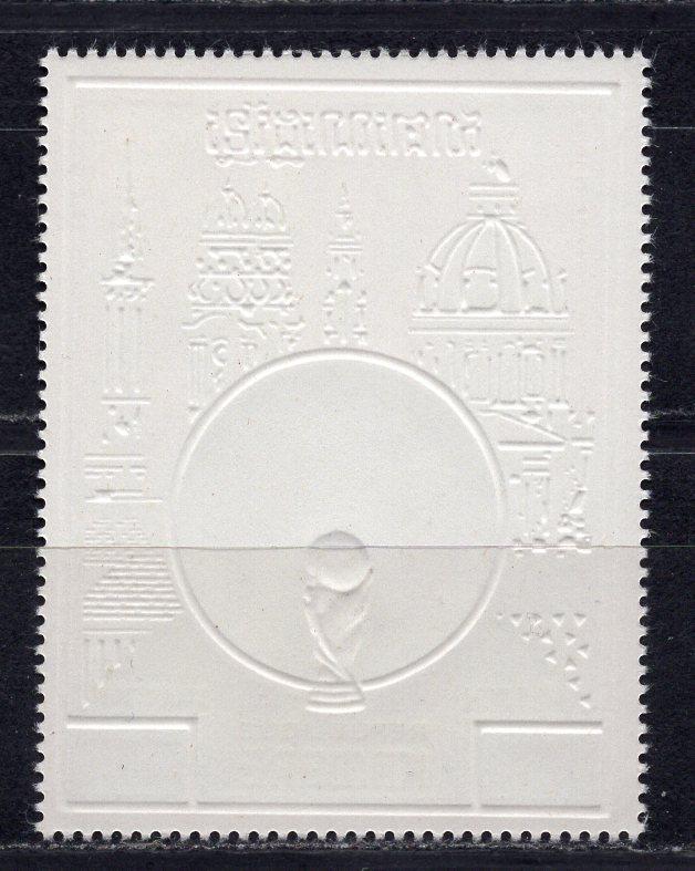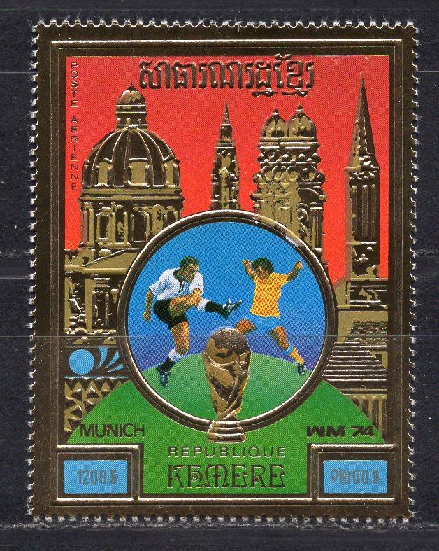 Почтовые марки. Камбоджа, 1975 г. Футбол. №431. Фольга. Золото. (Mi 20,00 €)