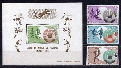 Почтовые марки. Нигер, 1974 г. Футбол. MiNr. 419 - 421, Бл. 10.
