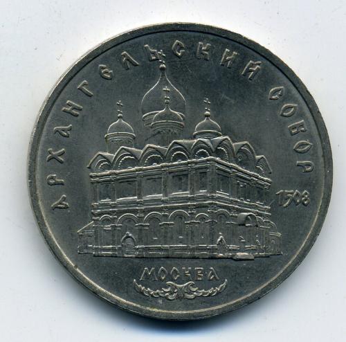 Монеты СССР. 5 рублей 1991 г. Архангельский собор.
