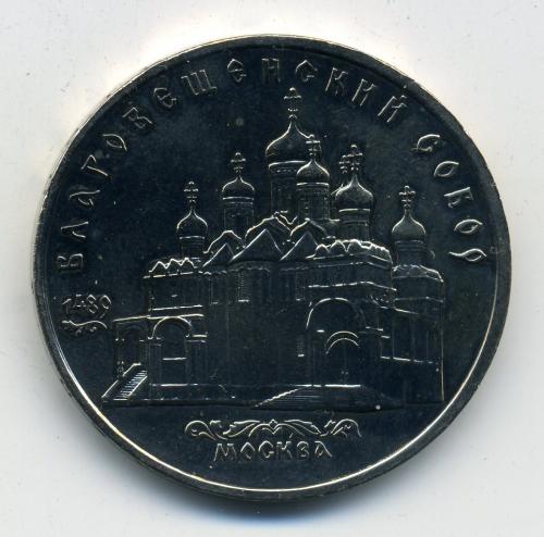 Монеты СССР. 5 рублей 1989 г. Благовещенский собор. Чистка.