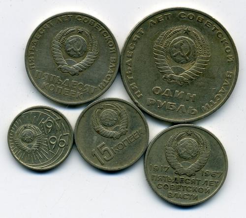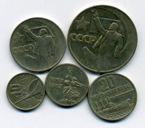 Монеты СССР. 1967 г. 50 лет советской власти. Набор. 5 шт.