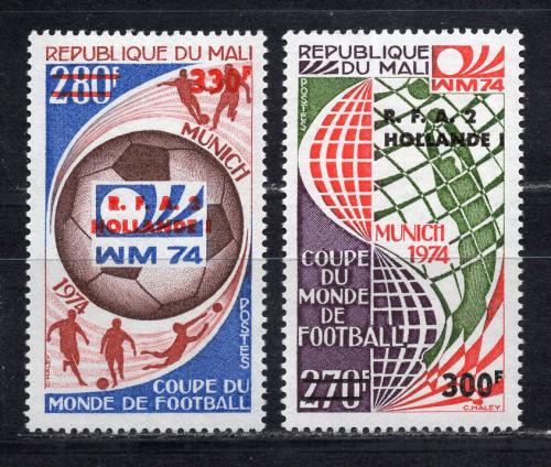 Почтовые марки. Мали, 1974. Германия выиграла чемпионат мира по футболу 1974 года. №446-447. Надпечатка.