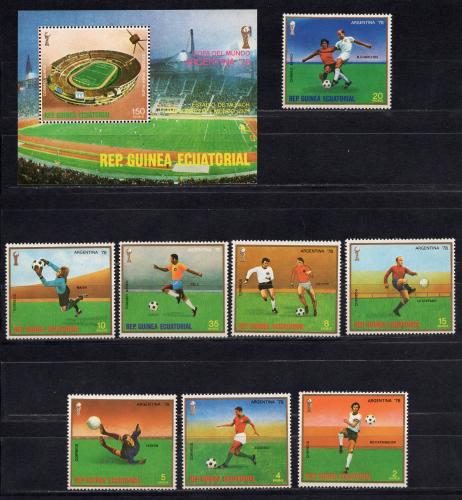 Почтовые марки. Экв. Гвинея, 1977. №1153-1160, Бл. 263. Футбол.