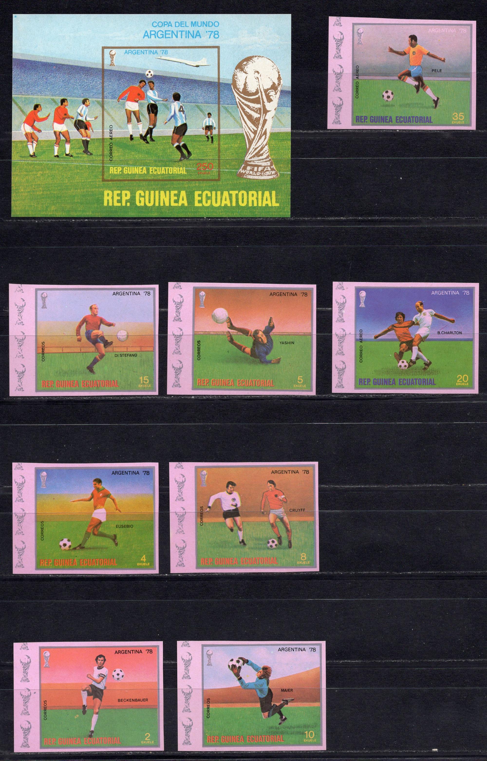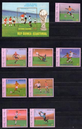 Почтовые марки. Экв. Гвинея, 1977 г. №1153-1160 B, блок 264. Футбол. Безз.