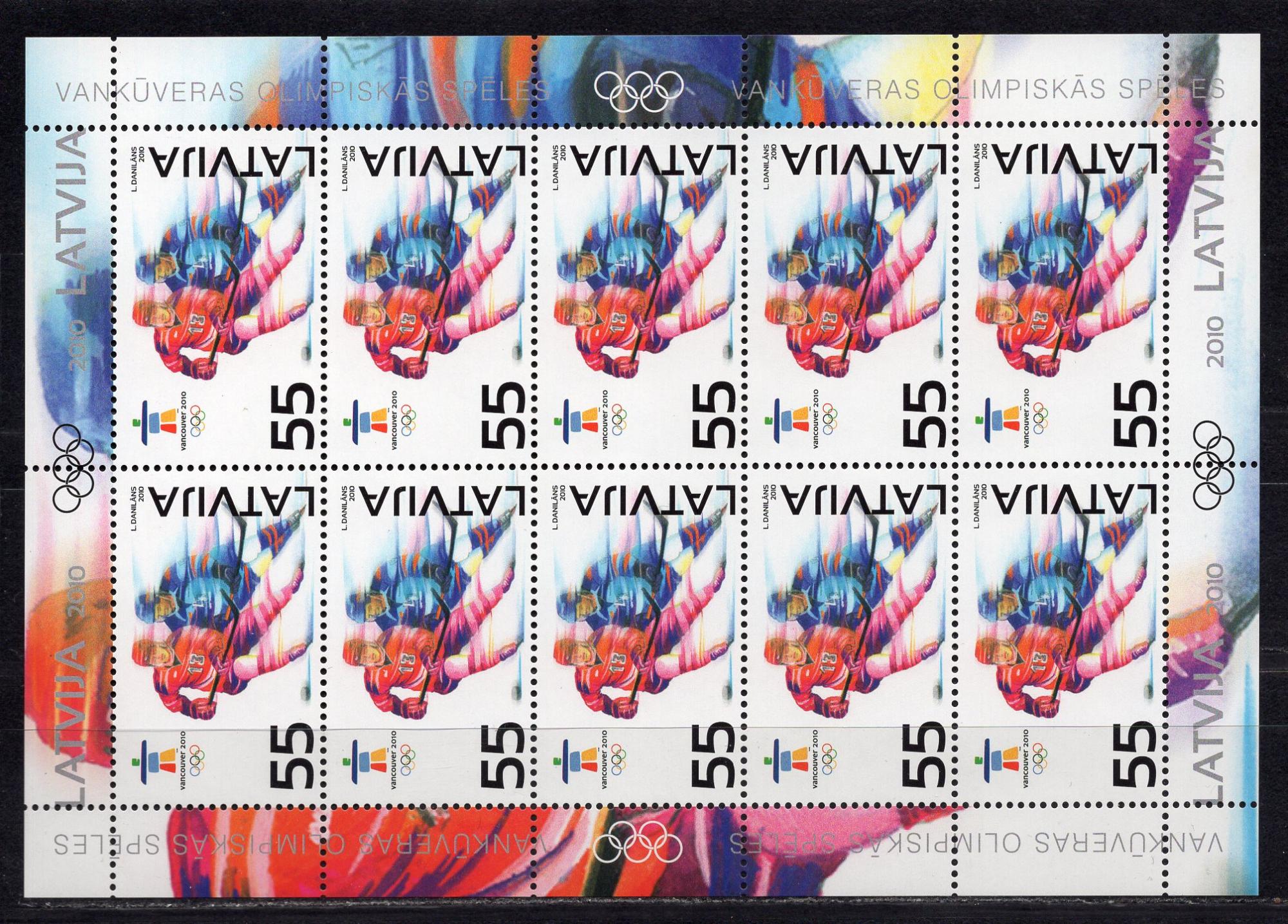 Почтовые марки. Латвия. 2010г. Олимп.игры в Ванкувере. №781. МЛ (Mi 16.0e)