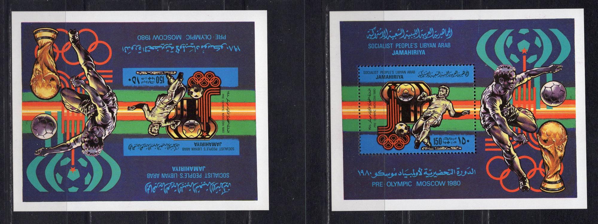 Почтовые марки. Ливия, 1979 г. Бл. 43 А + Б. Ол. Игры. Футбол.
