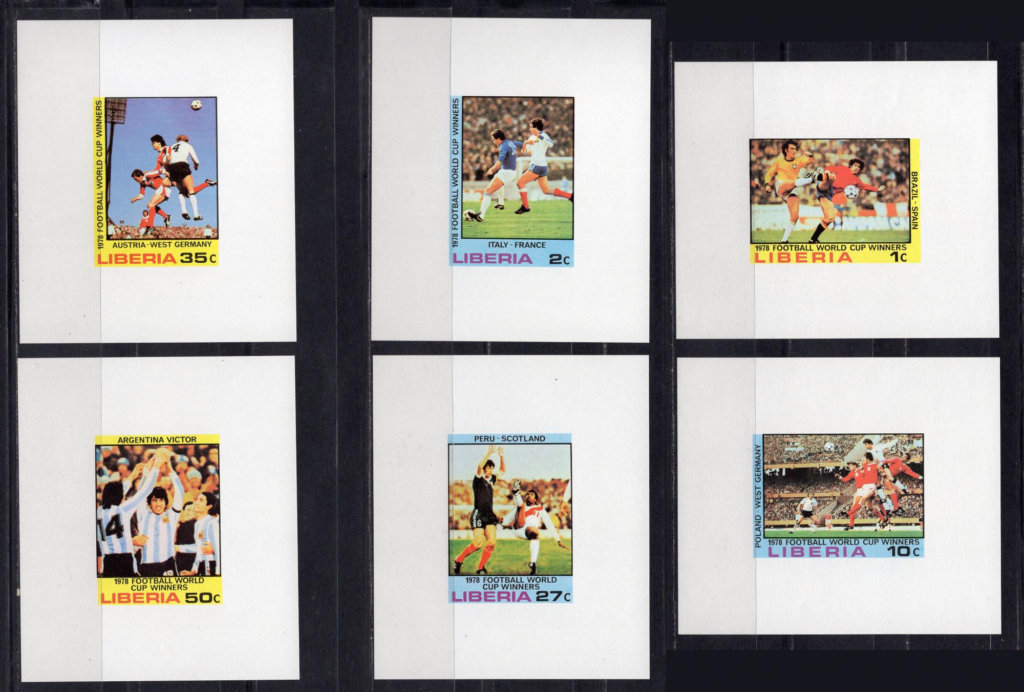 Почтовые марки. Либерия, 1978 г. №1075-80. Футбол. Люкс блоки.