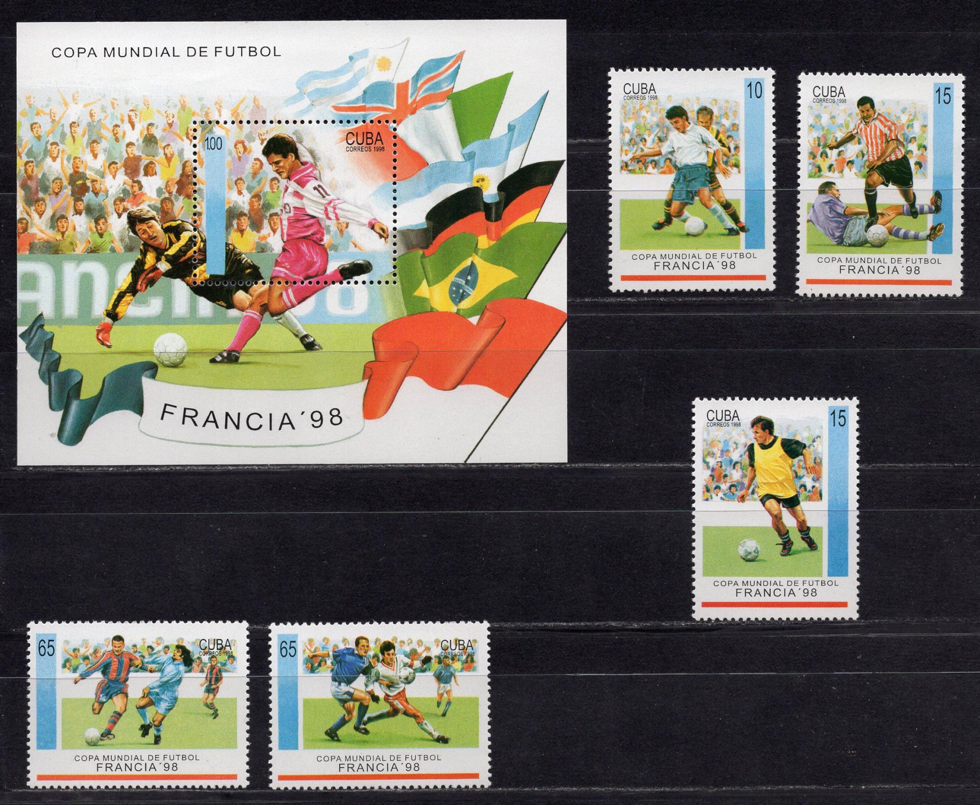 Почтовые марки. Куба, 1998. №4084-4088. Бл. 150. Футбол.