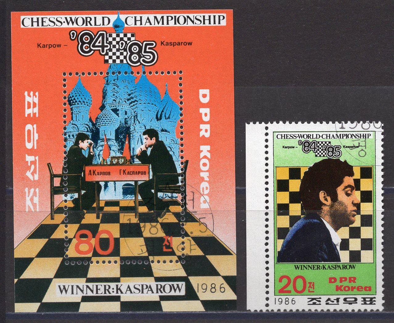 Почтовые марки. КНДР. 1986. Шахматы. №2719. Блок №212 (№2720)