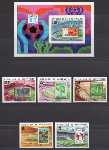 Почтовые марки. В.Вольта. 1977. Футбол. ЧМ. №700-704. Блок №48. Беззубц.