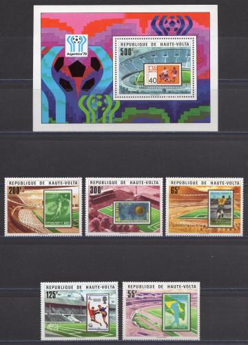 Почтовые марки. В.Вольта. 1977. Футбол. ЧМ. №700-704. Блок №48.