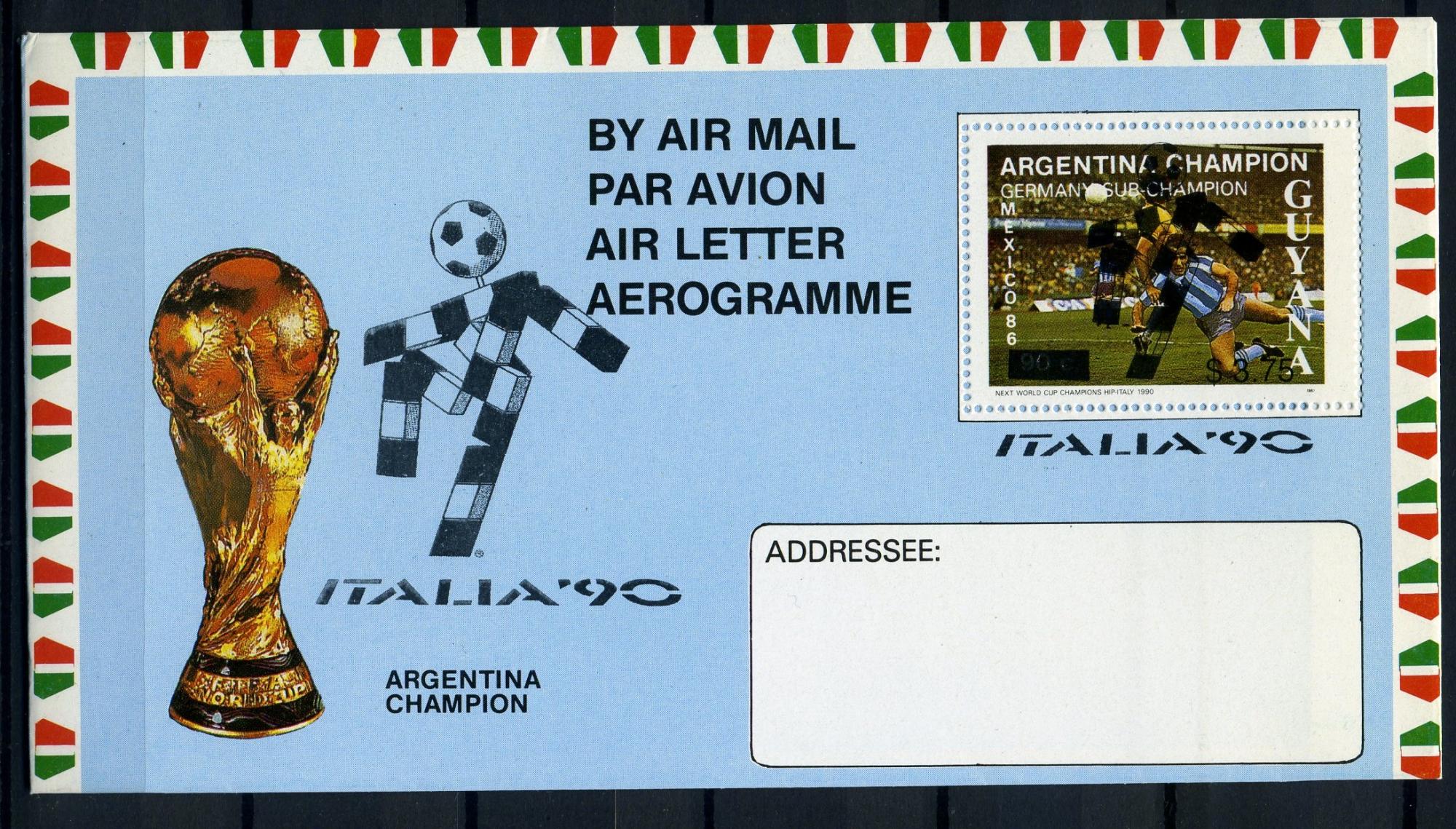 Аэрограмма. Италия 1990 г. Футбол. ЧМ. Аргентина - чемпион. КО.