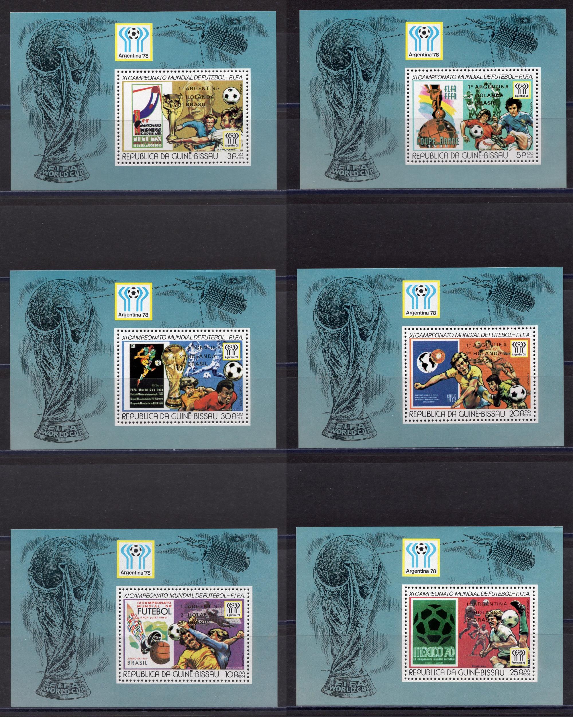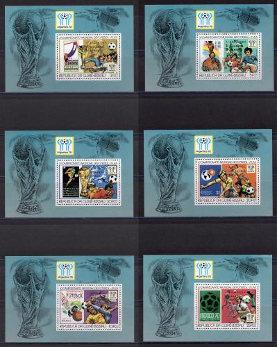 Почтовые марки. Гвинея-Биссау. 1978. Футбол. Блок №120А-125А. Надпечатка (золото)