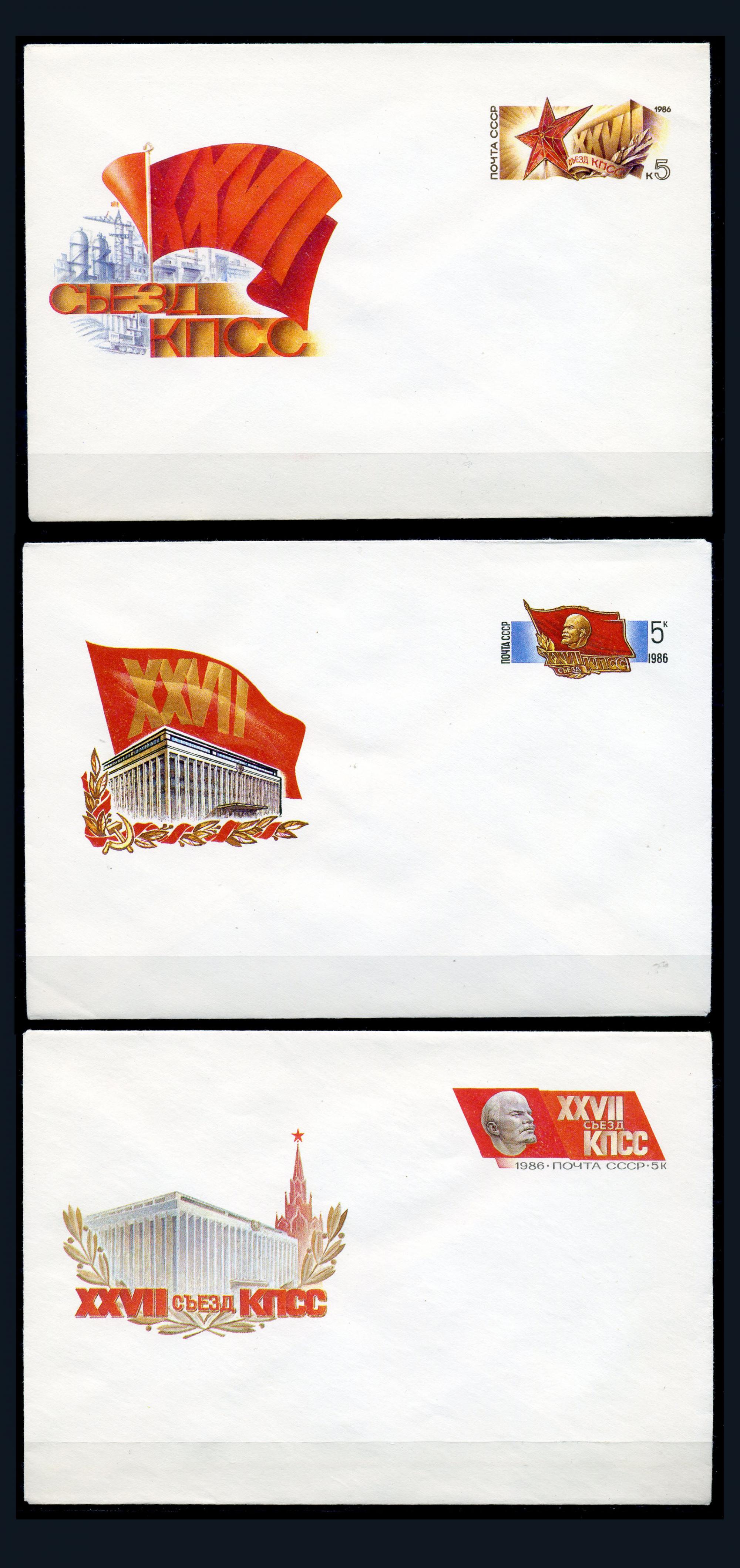 Конверты с ОМ. СССР 1986 г. XXVII съезд КПСС. № 108-110. КО.