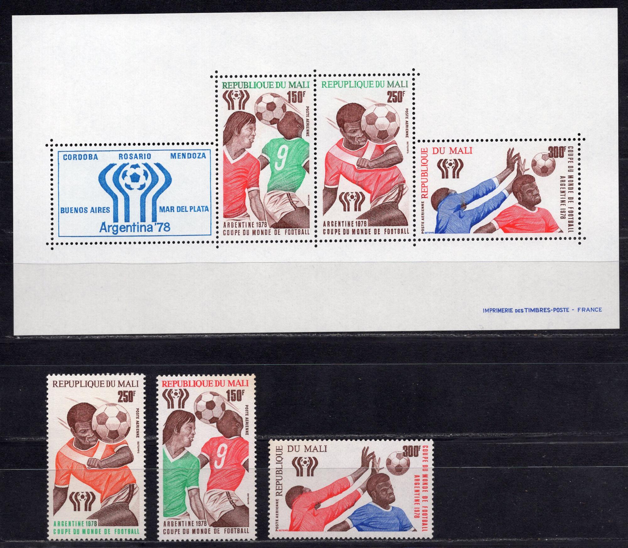 Почтовые марки. Мали, 1978 г. №625-627. Бл. 10. (тип 1) Футбол. (Mi 18.0 e)