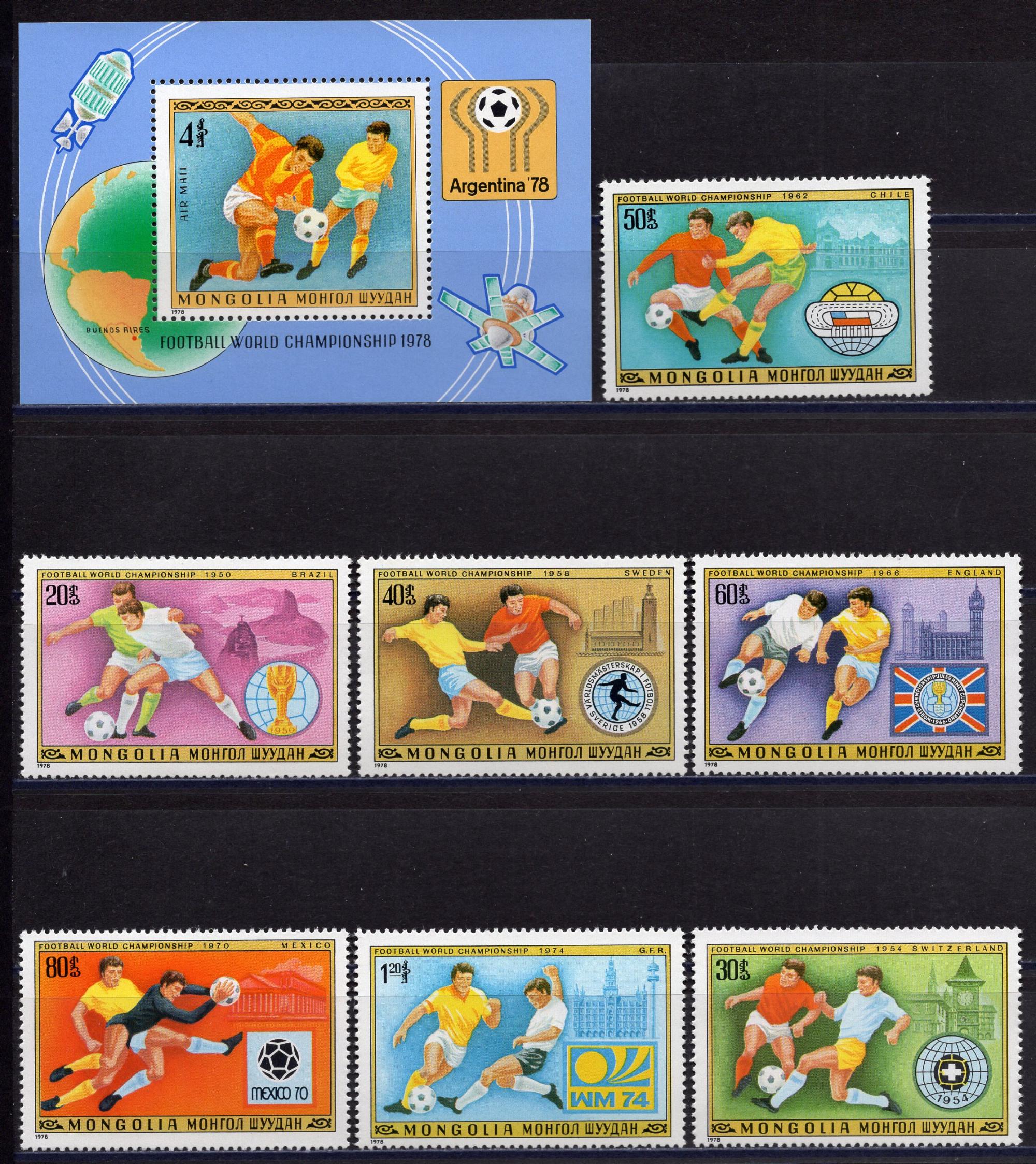 Почтовые марки. Монголия. 1978г. Футбол. №1148-1154. Блок №53.