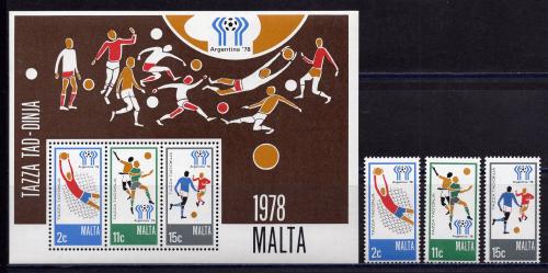 Почтовые марки. Мальта. 1978г. Футбол. №571-573. Блок №5.
