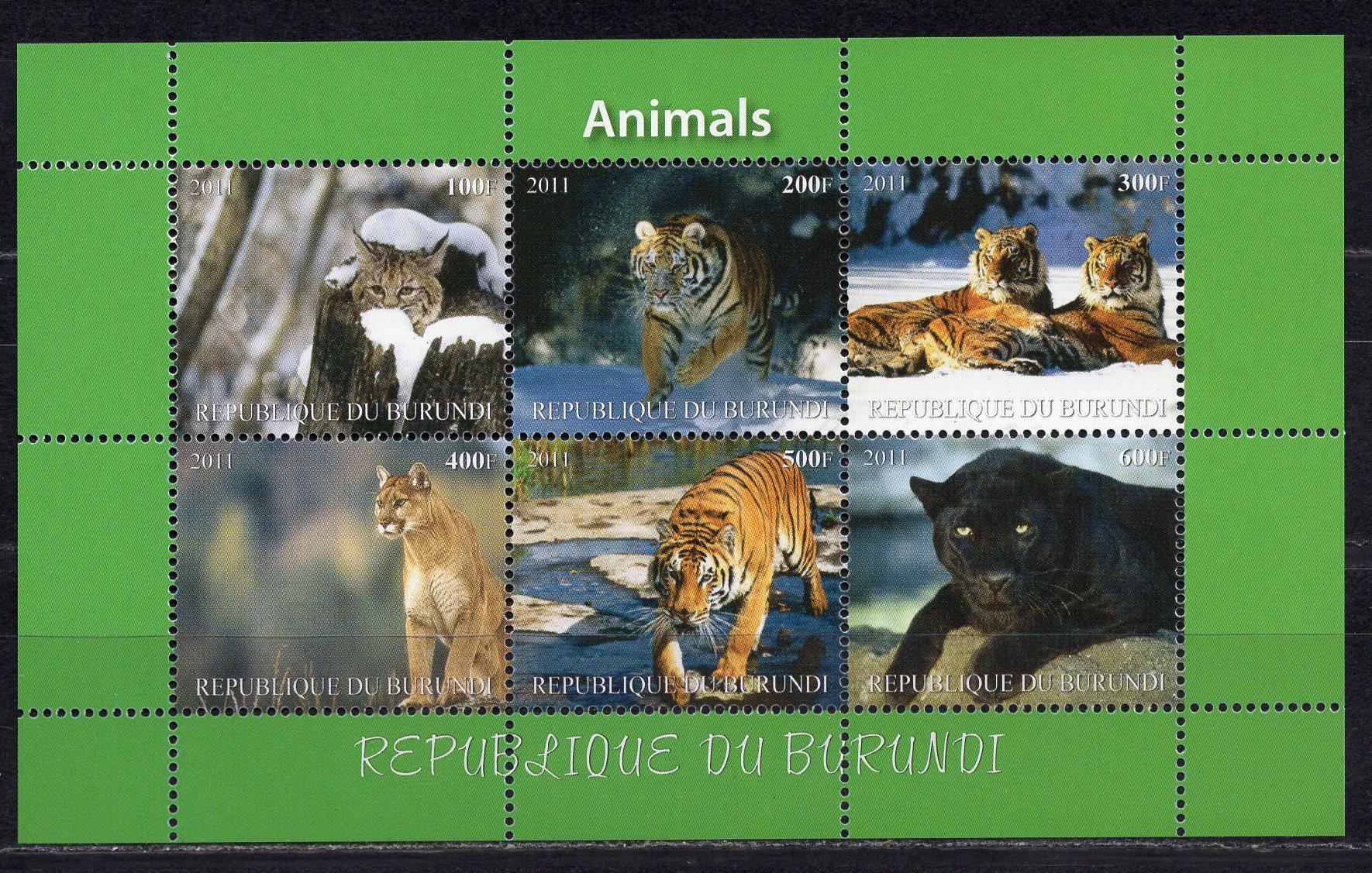 Почтовые марки. Бурунди, 2011 г. Дикие кошки. Некатал.