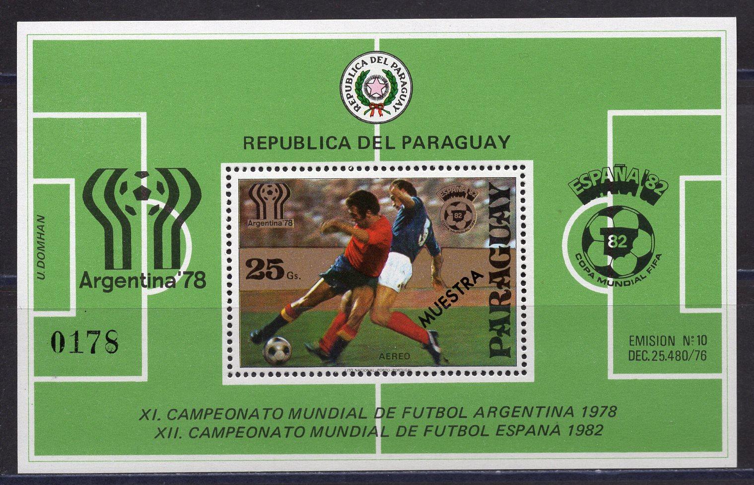 Почтовые марки. Парагвай. 1979г. Футбол. Блок №343. MUESTRA.