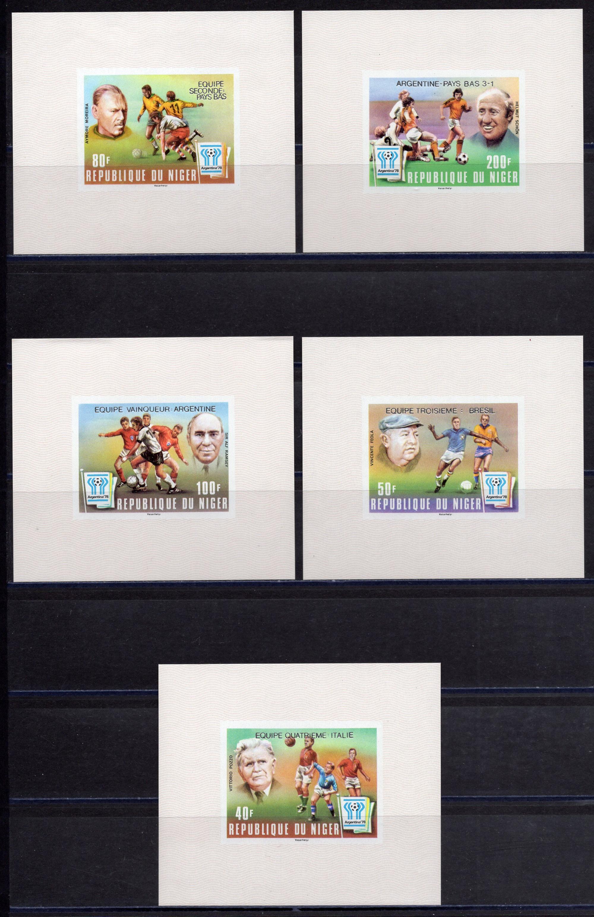 Почтовые марки. Нигер. 1978г. Футбол. №639-643. Надпечатка. Люкс-Блоки.