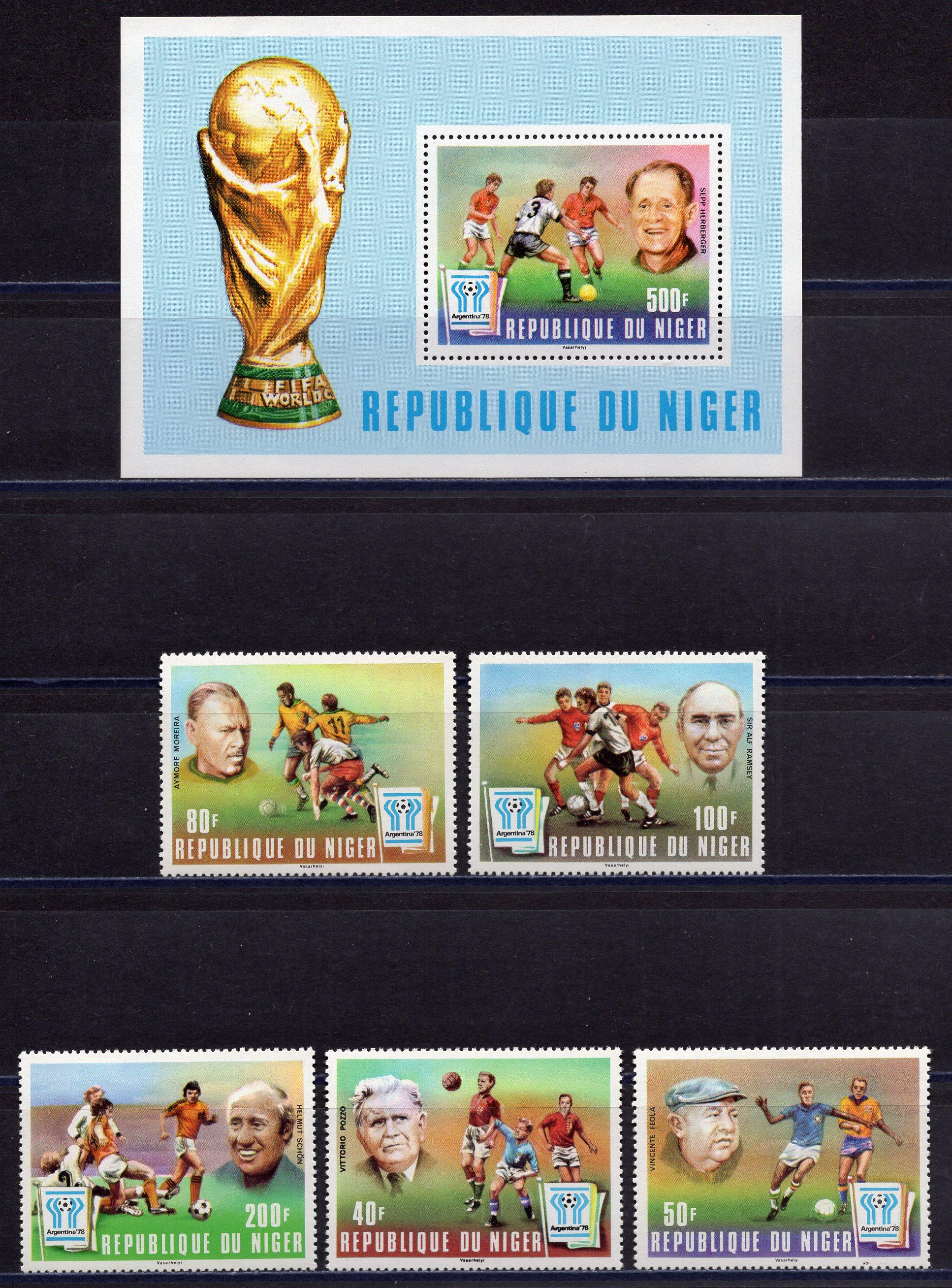 Почтовые марки. Нигер. 1977г. Футбол. №593-597. Блок №18.