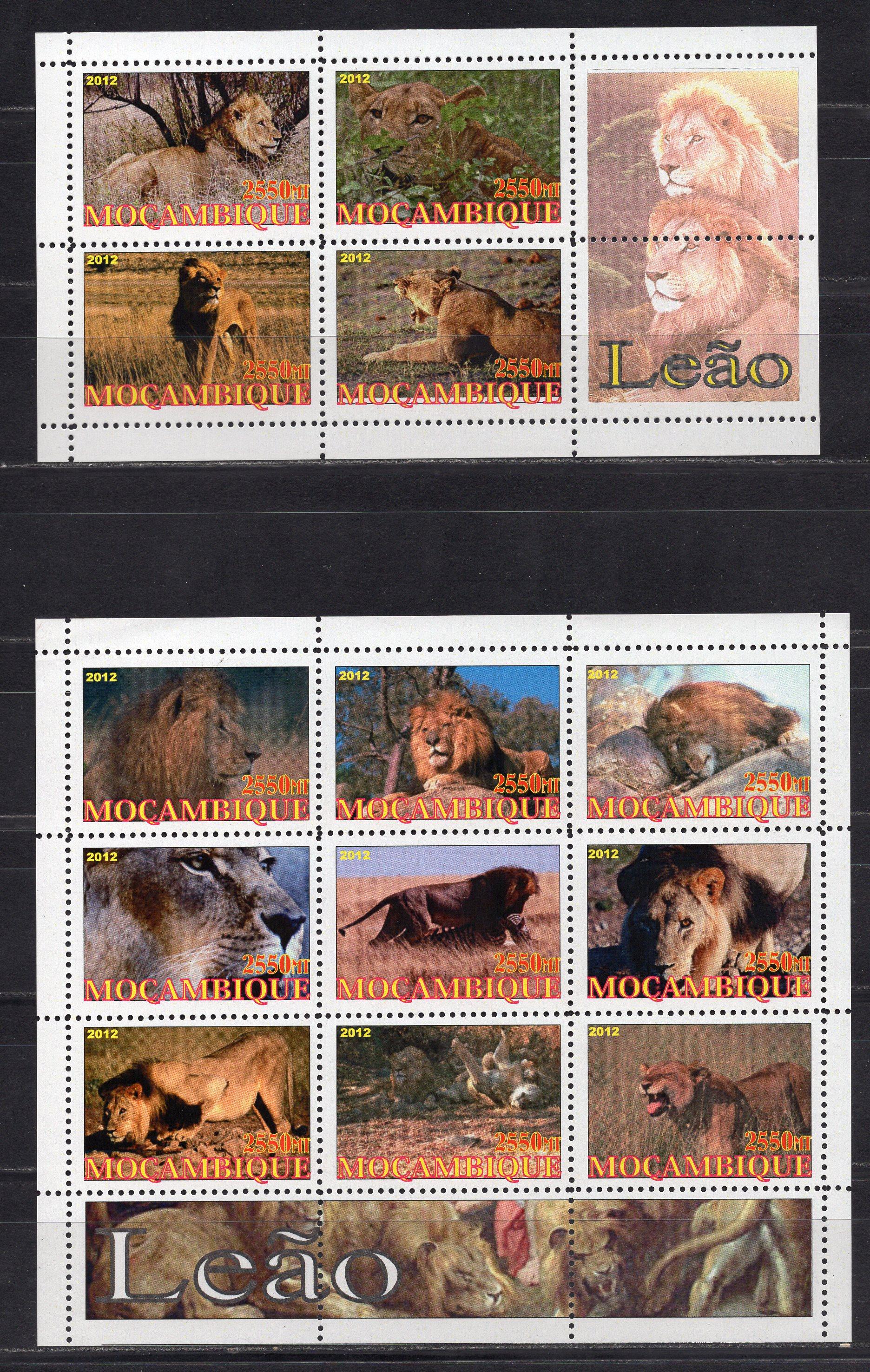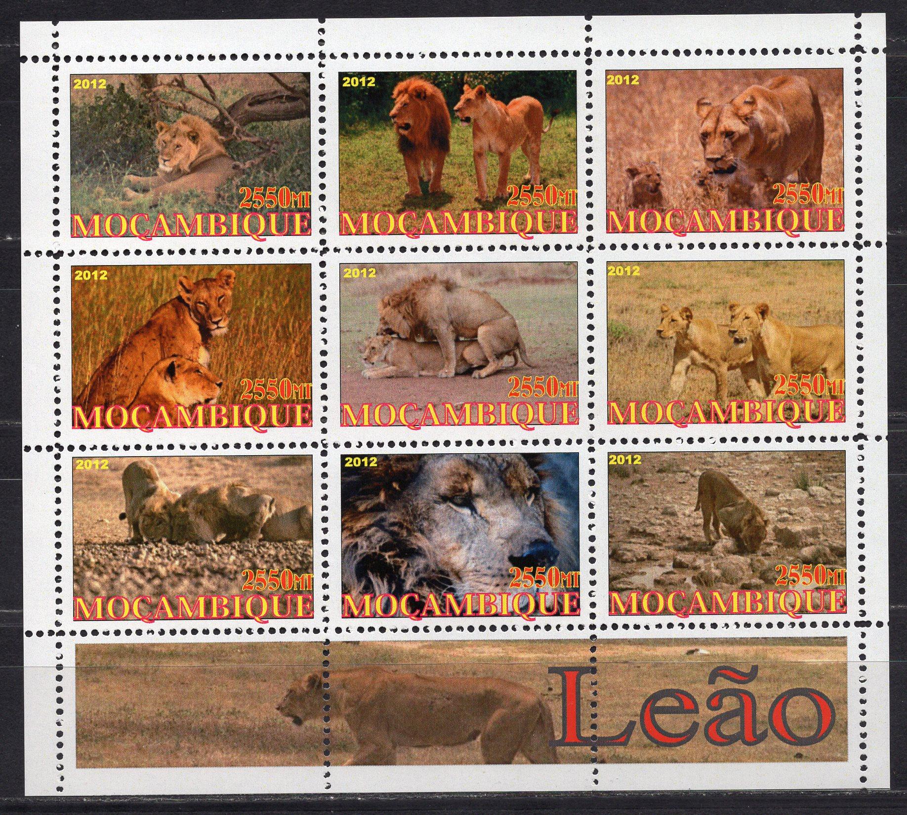 Почтовые марки. Мозамбик, 2012-2013 г. Фауна. Львы. Некатал.