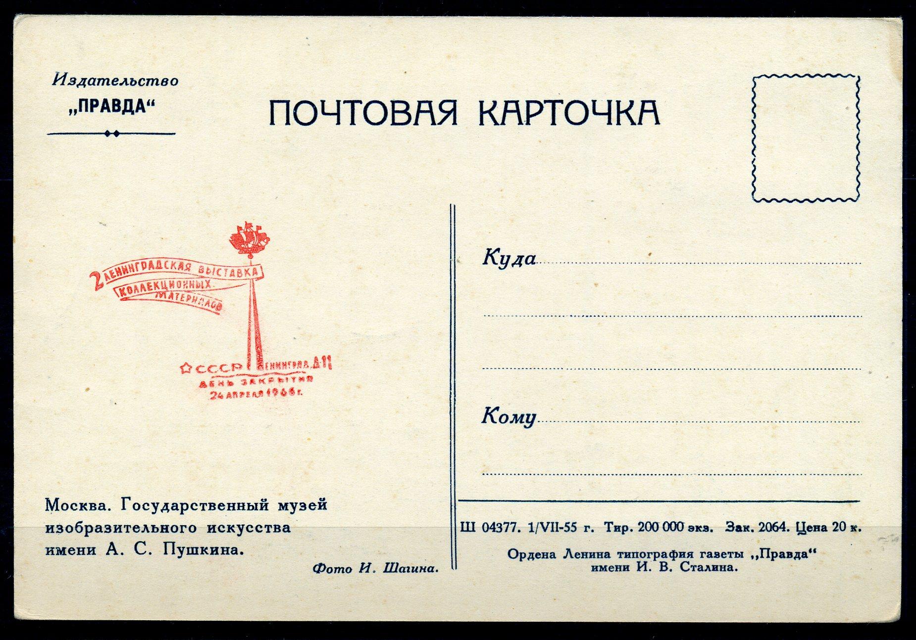 Почтовая карточка с маркой и СГ. СССР 1966 г. 2-яЛенинградская выставка коллекционных материалов.