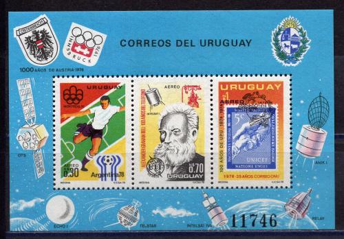 Почтовые марки. Уругвай. 1976г. Футбол. Космос. Блок №29.