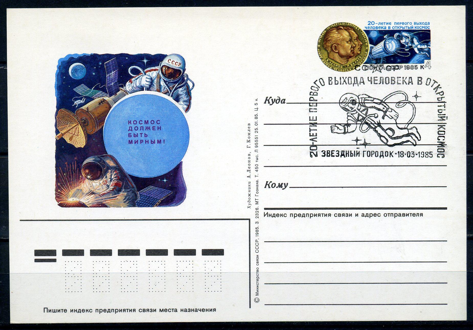 Почтовая карточка с ОМ и СГ. СССР 1985 г. 20-летие первого выхода человека в открытый космос.