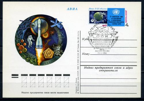 Почтовая карточка с ОМ и СГ. СССР 1982 г. 2-яконференция ООН по исследованию косм.пространства.