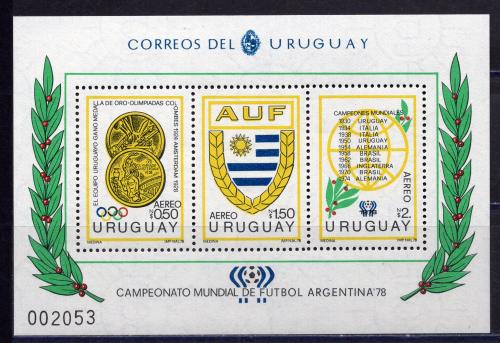 Почтовые марки. Уругвай. 1978г. Футбол. Блок №39.