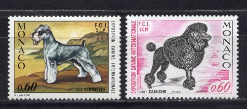 Почтовые марки. Монако, 1974-1975. №1120, 1182. Выставка собак. Породы.